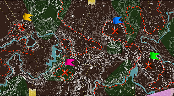 Spot elevations are more accurate than contour lines and are usually indicated on topo maps like the one above, by a cross, a dot or an X. They show highest and lowest points like the summit of a hill and top or bottom of a retaining wall which are critical to a site.